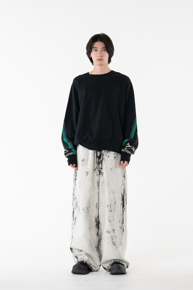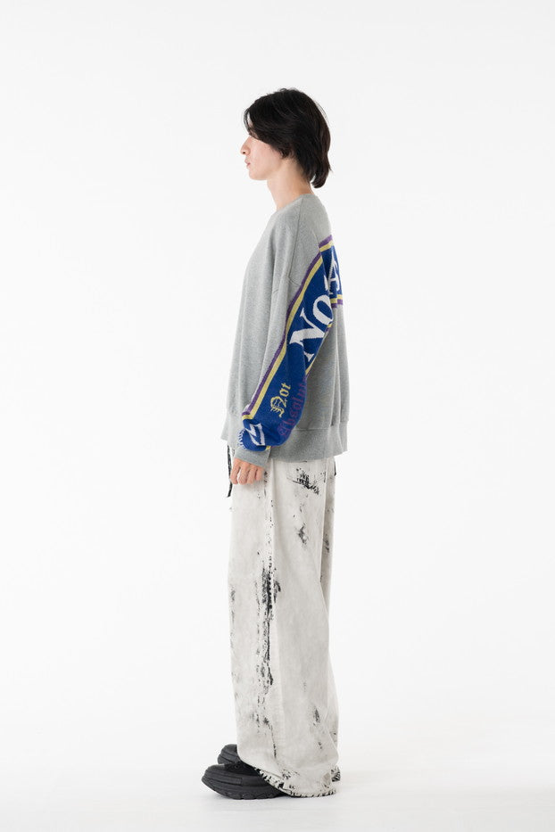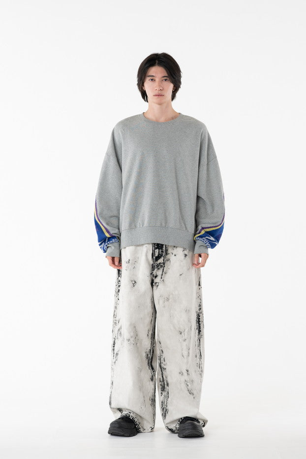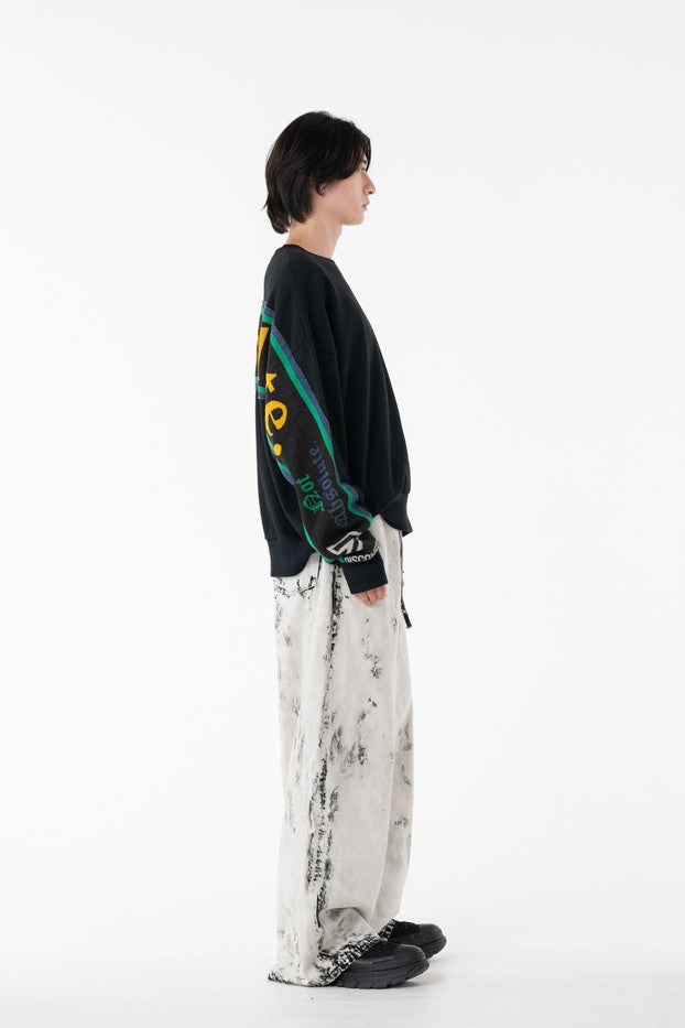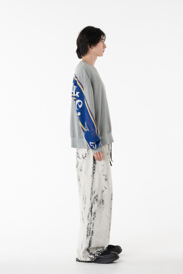快適な着心地と保温性と高い吸水性に富んだ30/10裏毛を使用したクルーネックスウェット。袖から見頃に渡りオリジナルのサッカーマフラーを叩きつけたデザインがインパクト抜群なアイテム。