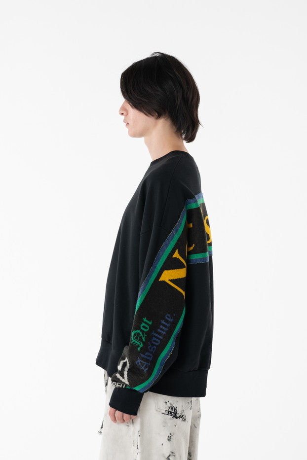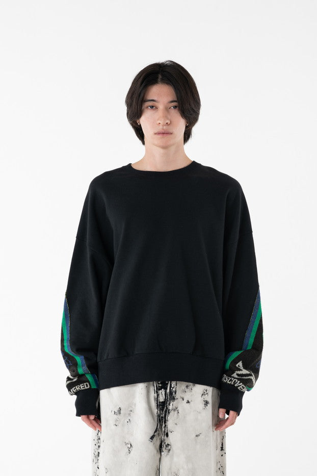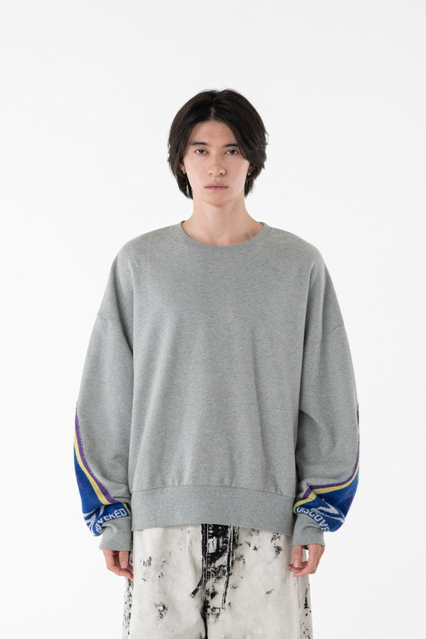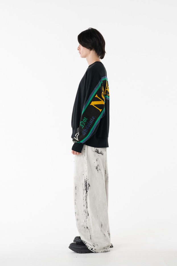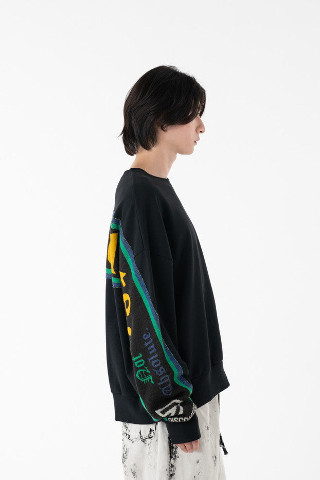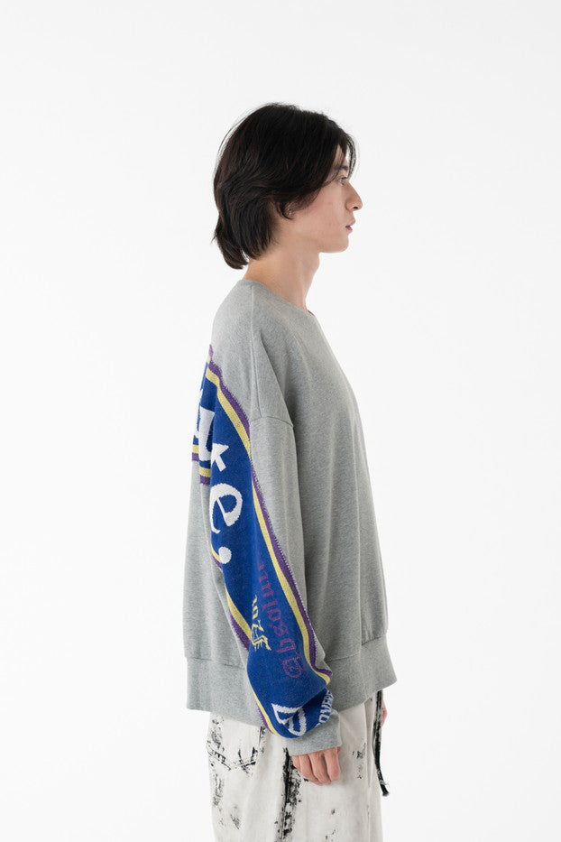 快適な着心地と保温性と高い吸水性に富んだ30/10裏毛を使用したクルーネックスウェット。袖から見頃に渡りオリジナルのサッカーマフラーを叩きつけたデザインがインパクト抜群なアイテム。