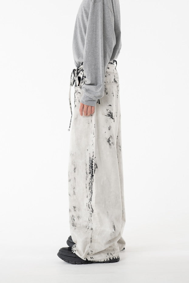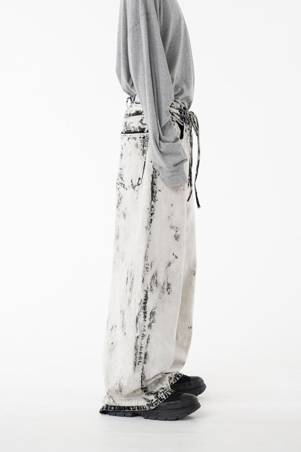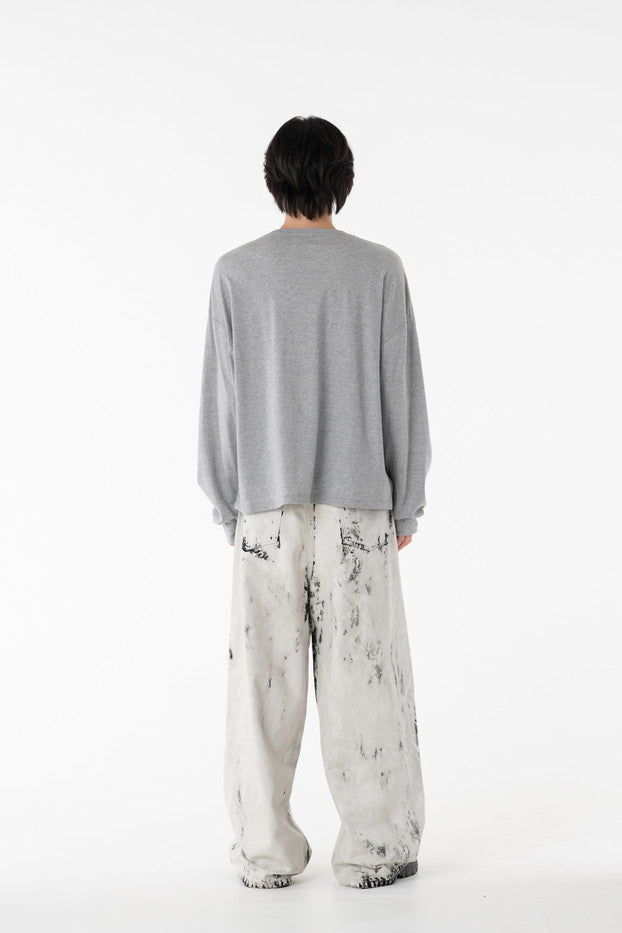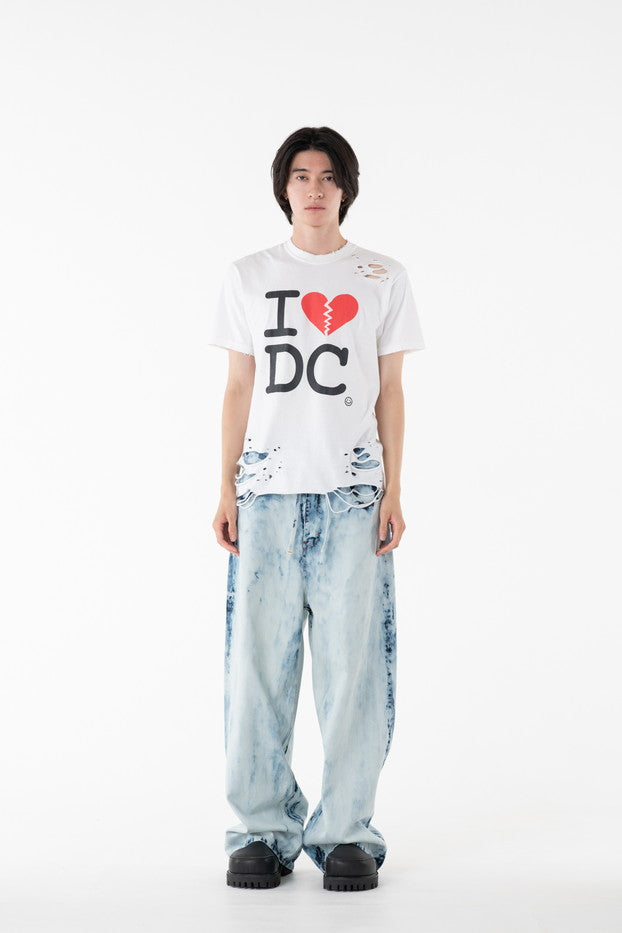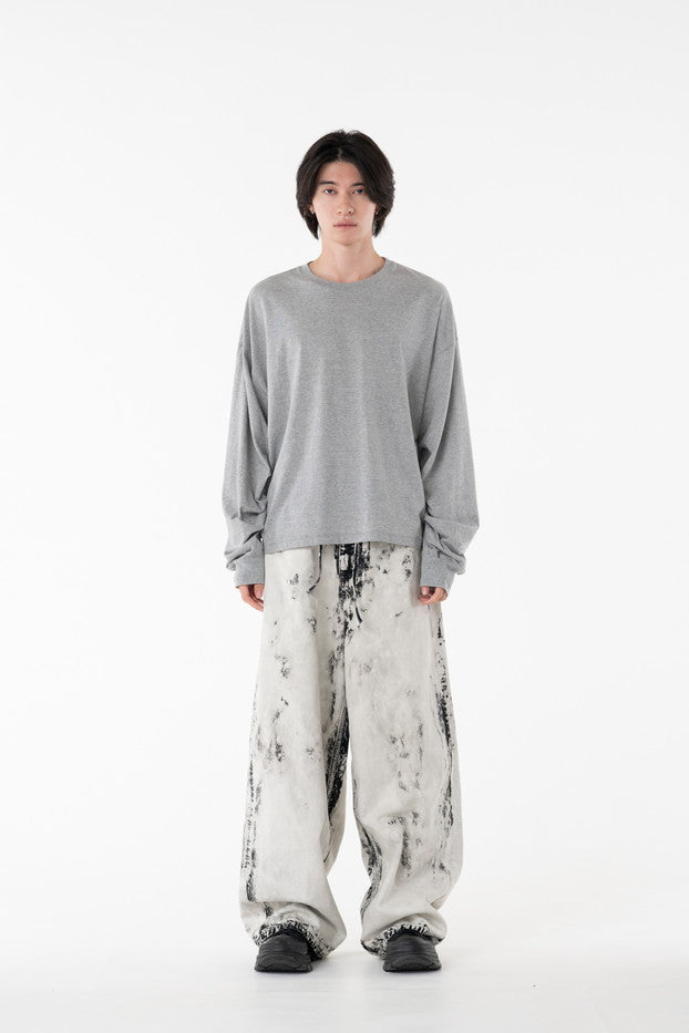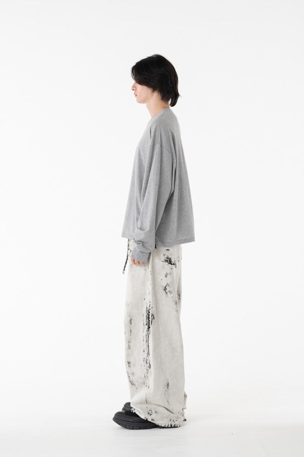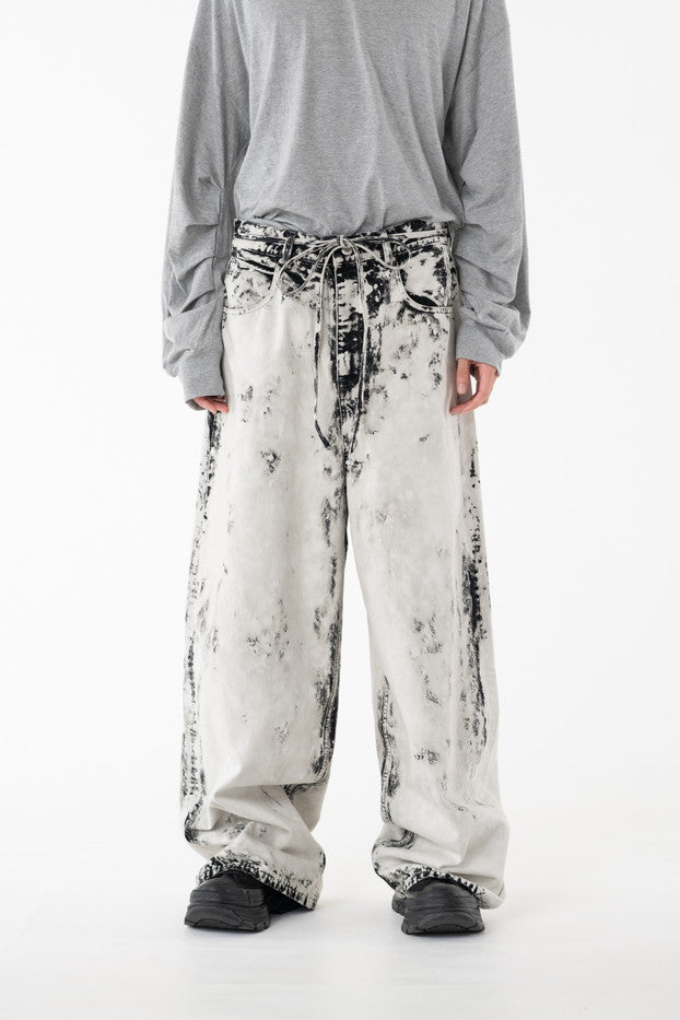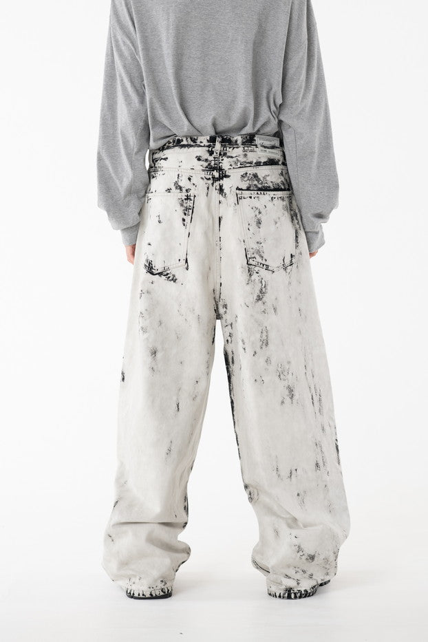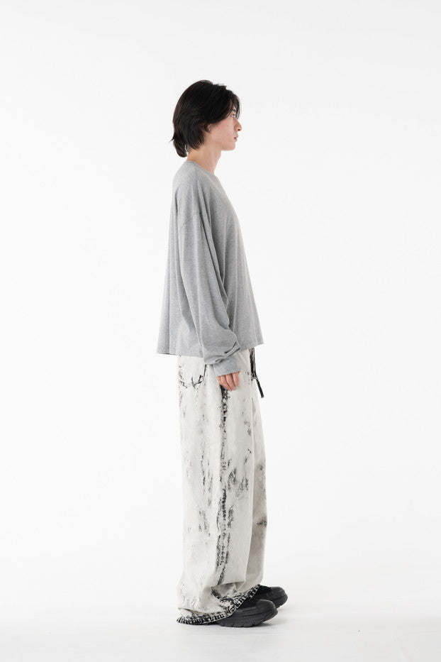 12ozの縦⽷✖ムラ⽷の凹凸感が出やすい素材を使⽤ したデニムパンツ。今の気分を反映さえたバギーシルエットとバランスの取れたブリーチ加工がインパクト大なアイテム。