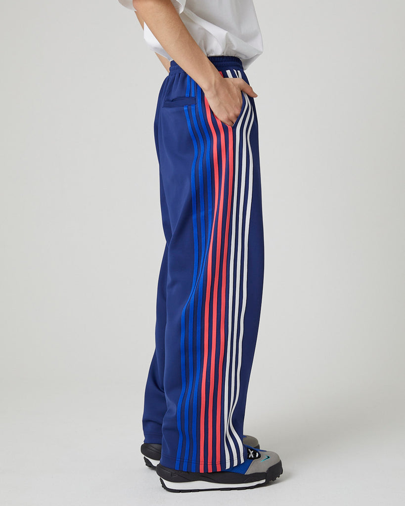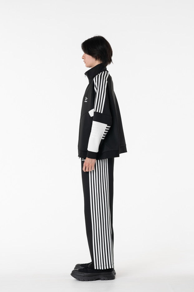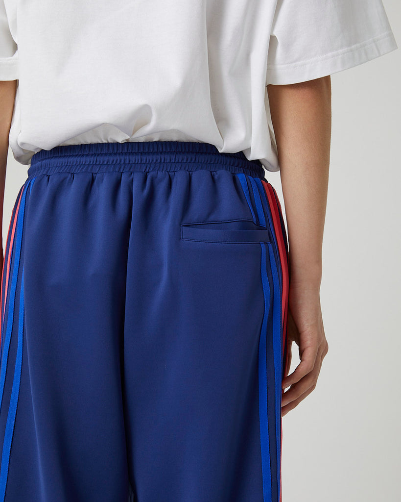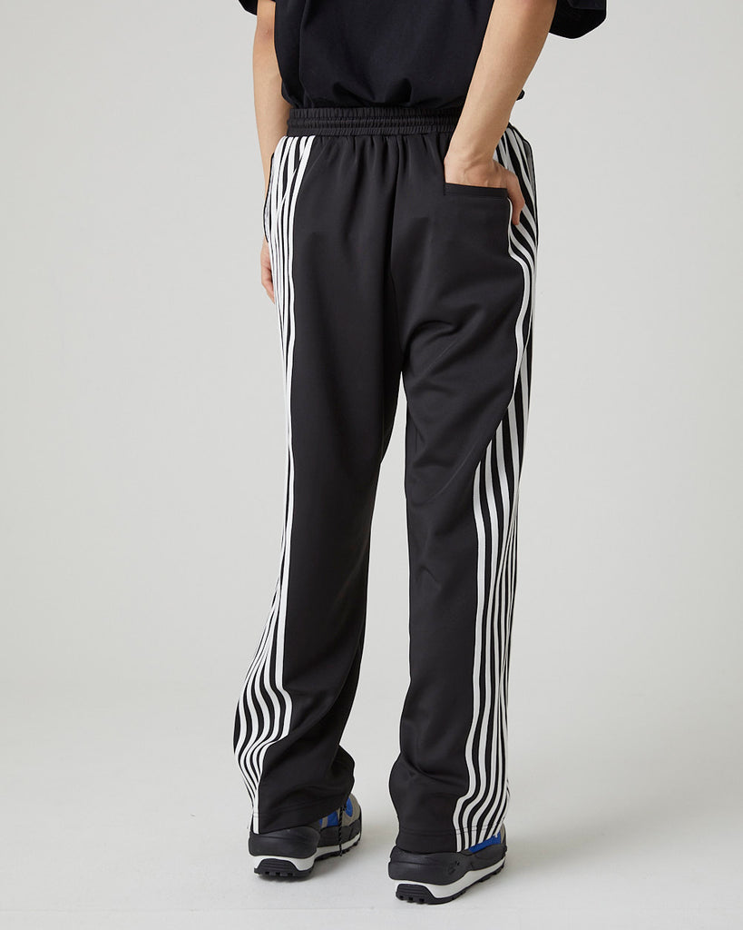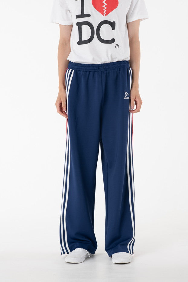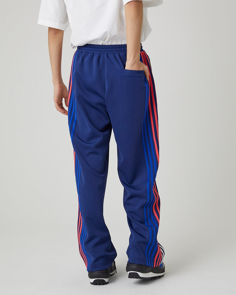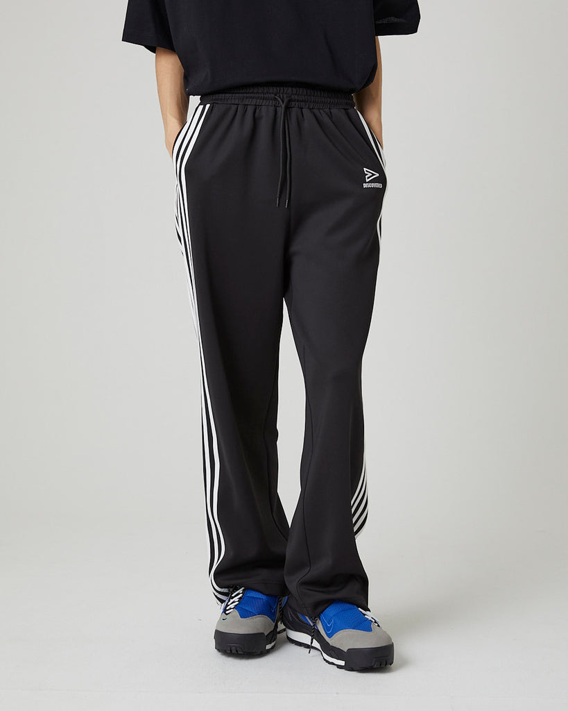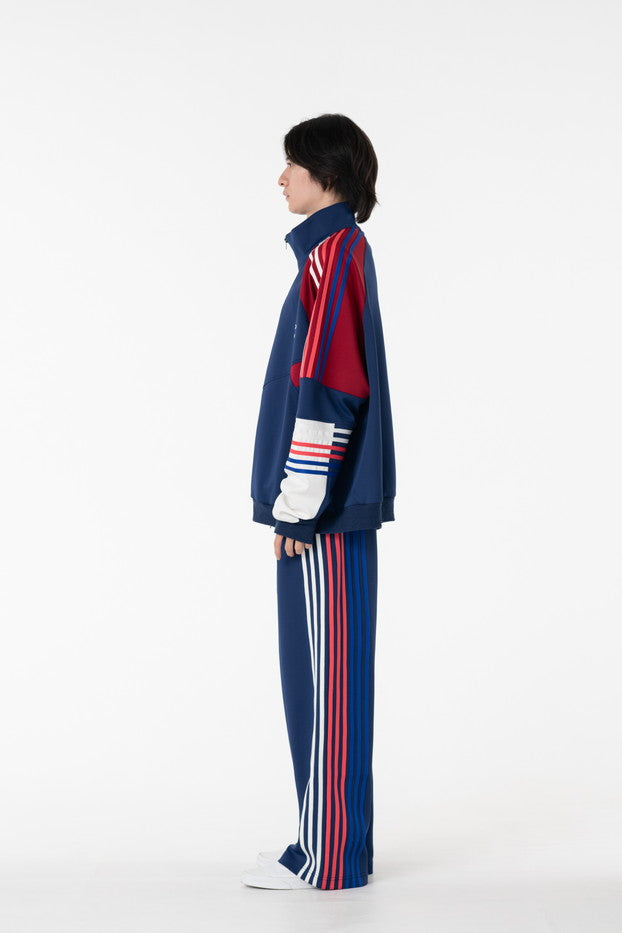快適性と通気性に優れたポリエステルジャージを使用したトラックパンツ。程よくゆとりのあるシルエットと切替のようなライン使いとワンポイント刺繍が特徴的なアイテム。
