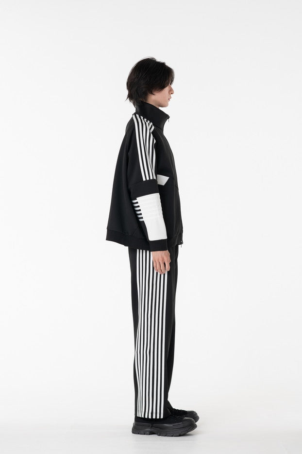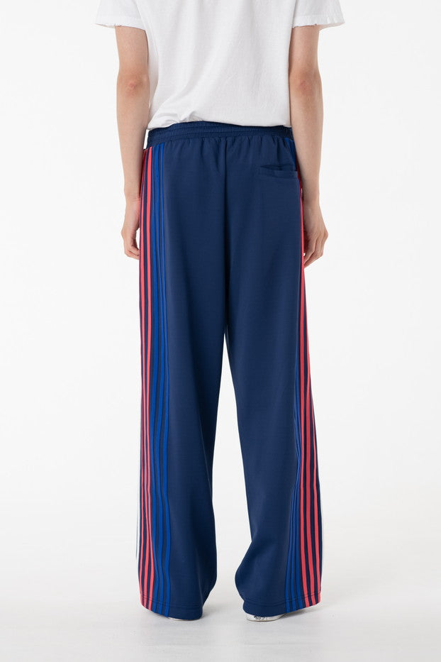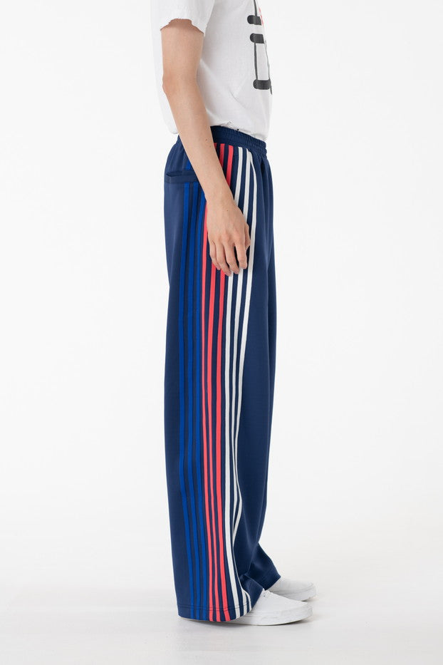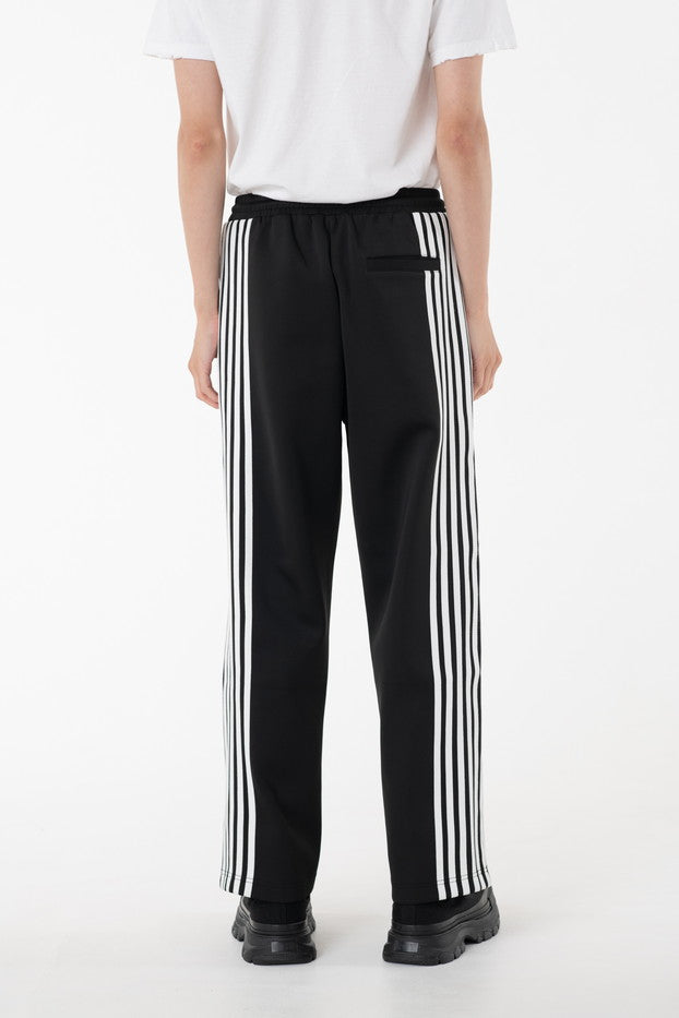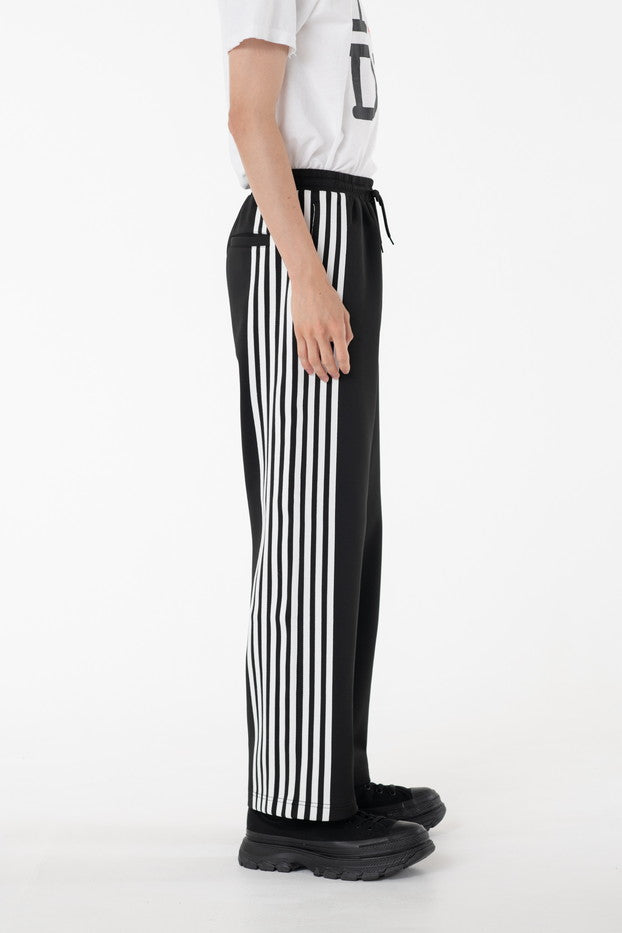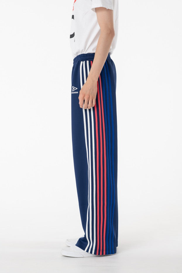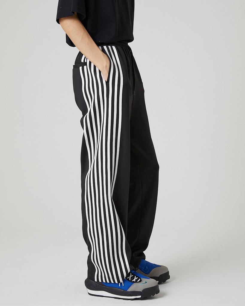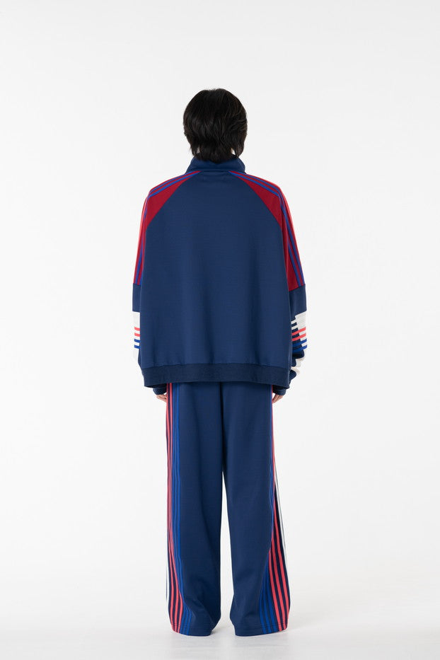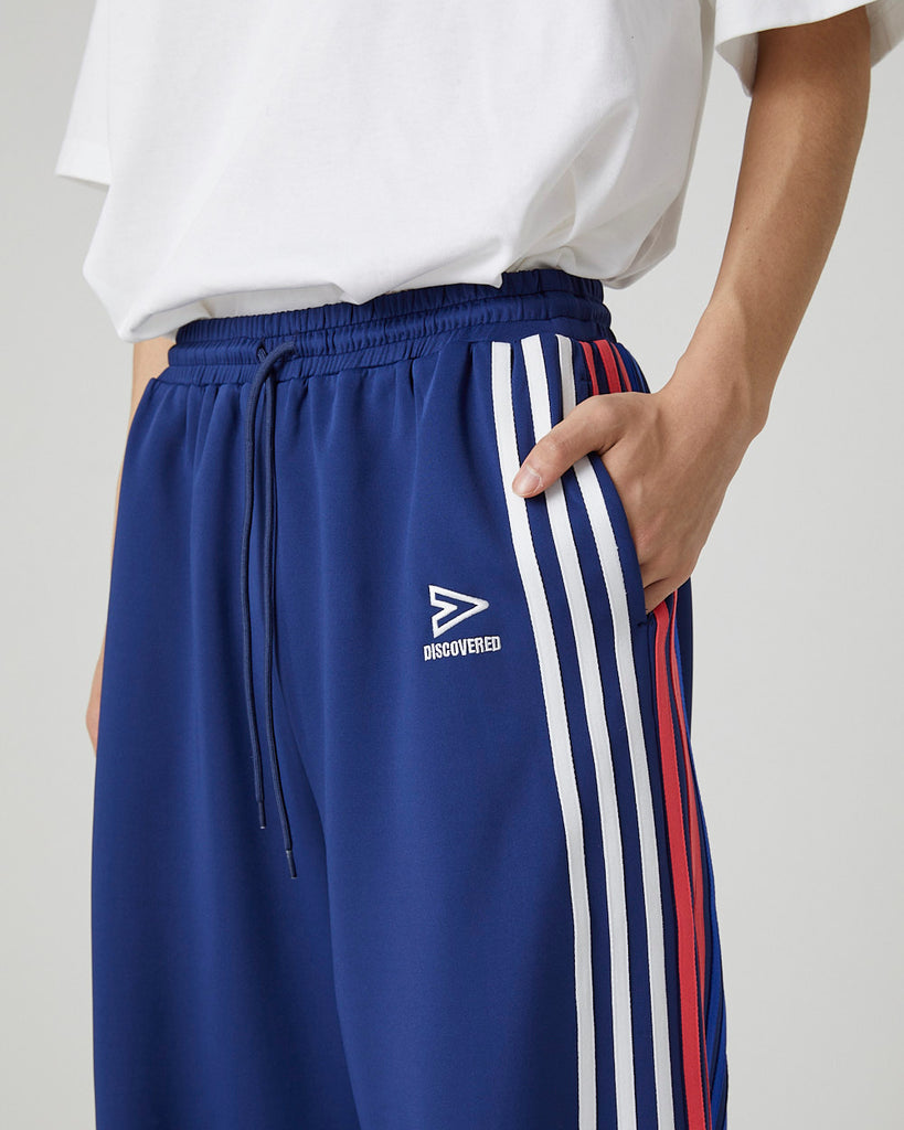 快適性と通気性に優れたポリエステルジャージを使用したトラックパンツ。程よくゆとりのあるシルエットと切替のようなライン使いとワンポイント刺繍が特徴的なアイテム。