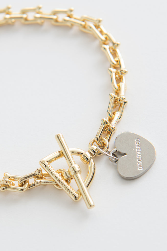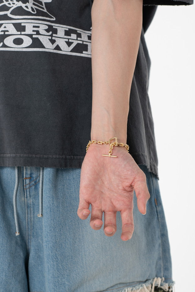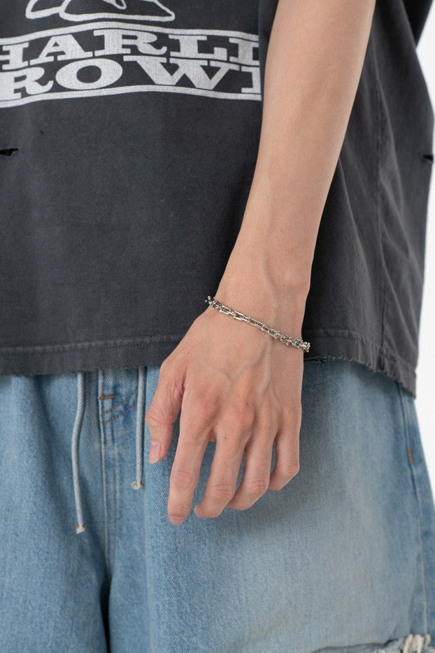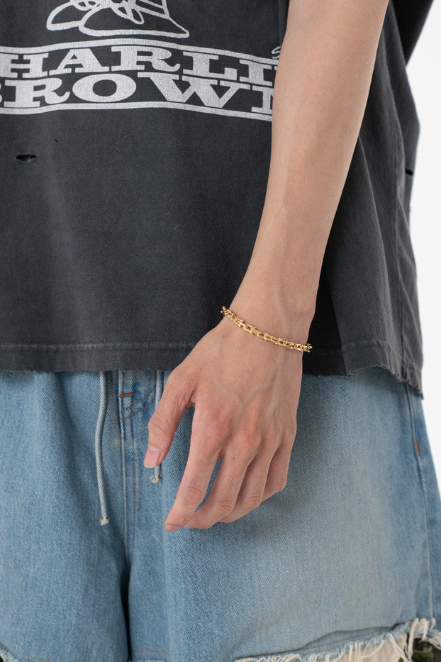 真鍮素材を使用したオリジナ ルデザインのブレスレット。某メゾンを彷彿させるモチー フをベースにコマの先端を骨デザインにアレンジした点が ポイントとなったアイテム。(細タイプ)FREE[cm]:LENGTH:21モデル(180m/62kg)着用サイズ:F