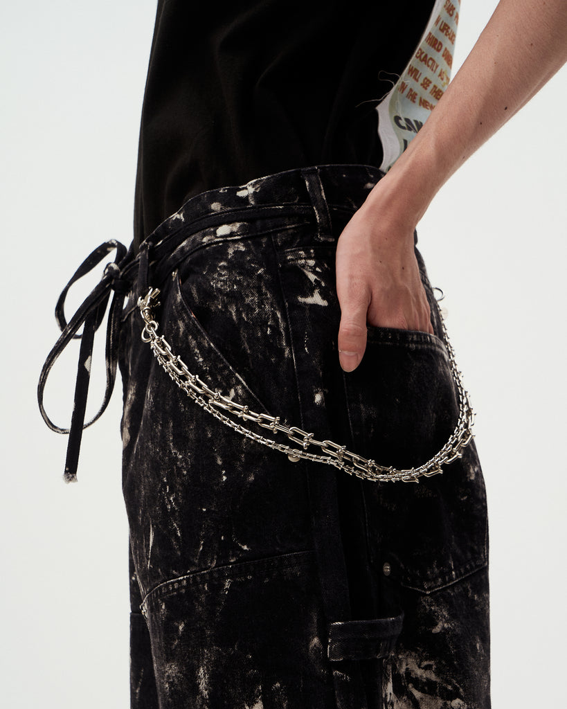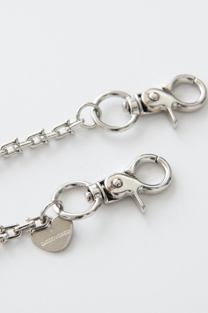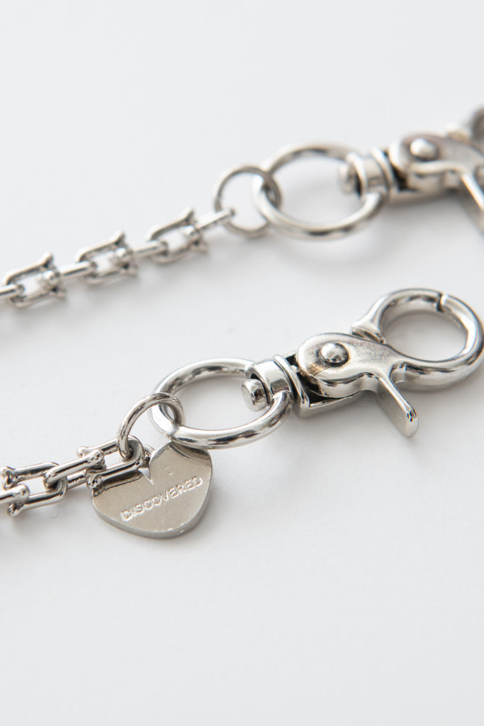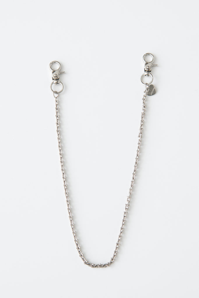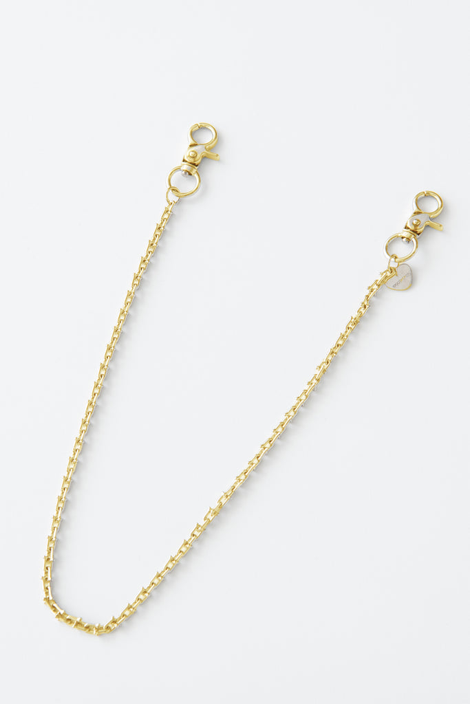 真鍮素材を使用したオリジナ ルデザインのウォレットチェーン。某メゾンを彷彿させるモチー フをベースにコマの先端を骨デザインにアレンジした点が ポイントとなったアイテム。(細タイプ)FREE[cm]:LENGTH:58モデル(180m/62kg)着用サイズ:F