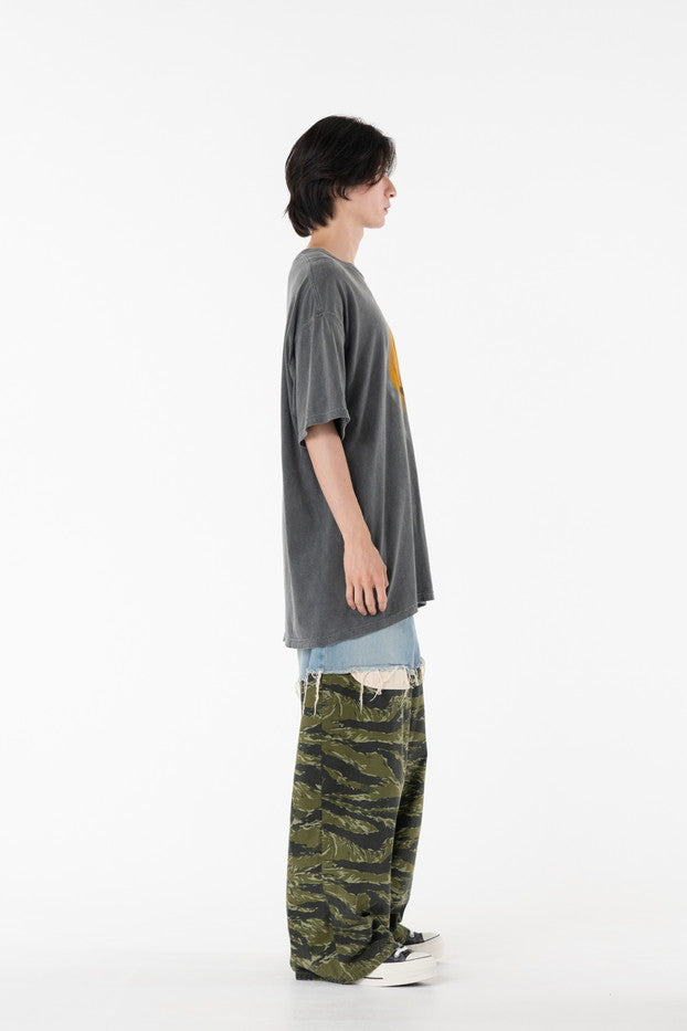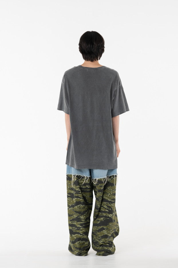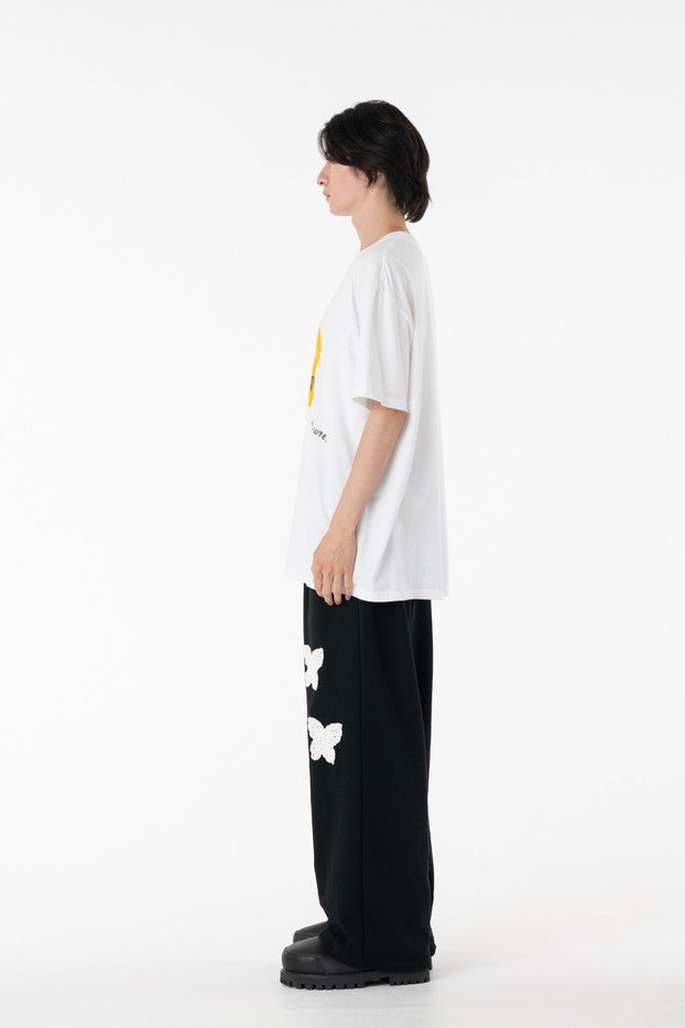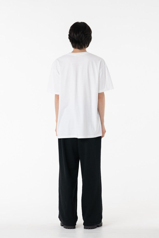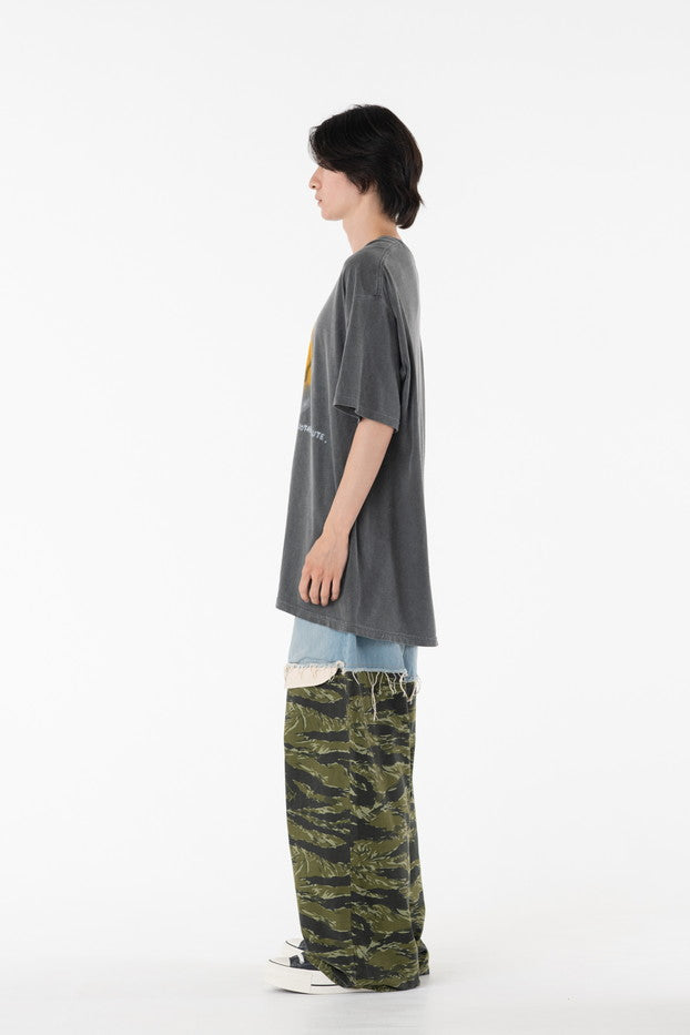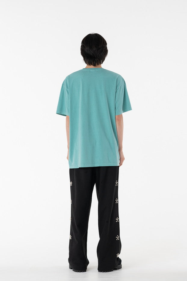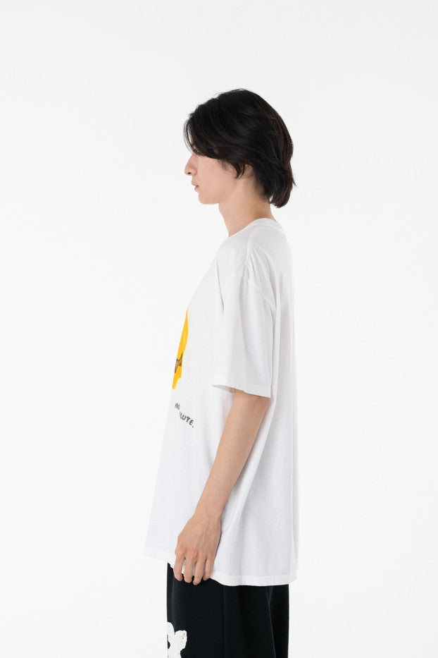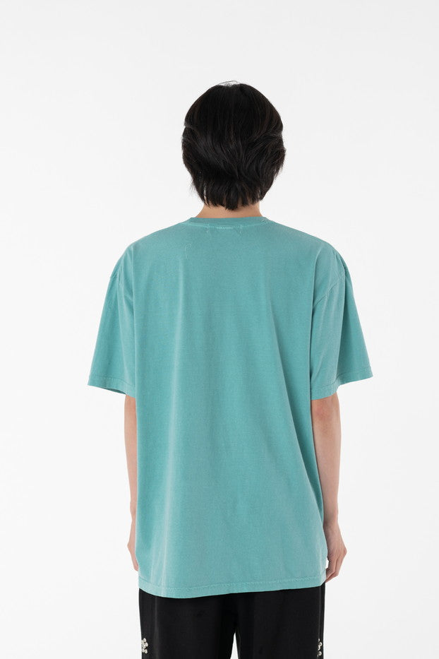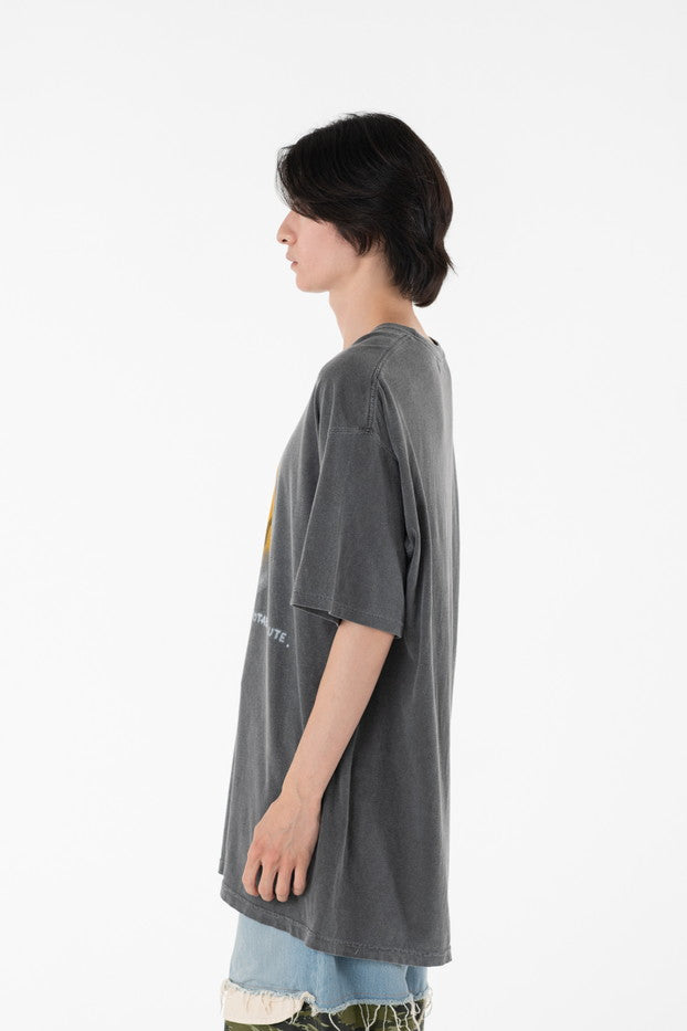 肌触りの良い滑らかなソフト天竺を使用した半袖Tシャツ。淀よくゆとりのあるシルエットとピグメント加工、エアブラシでハンドペイントにて描かれたスマイルマークがポイントとなったアイテム。