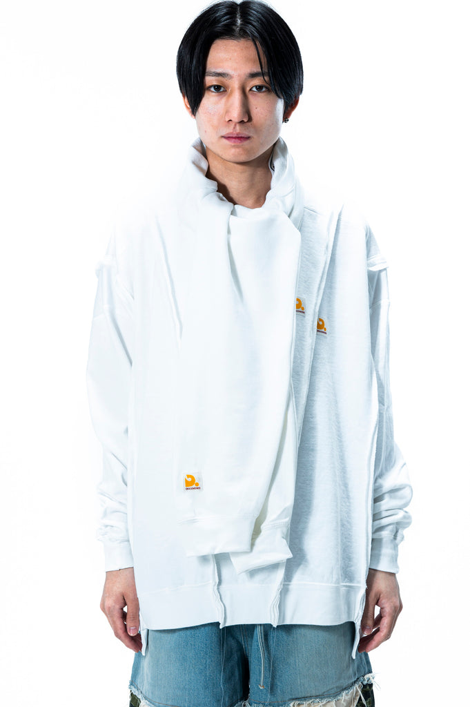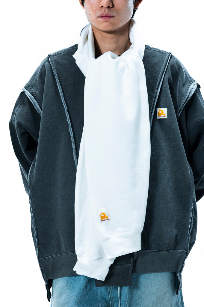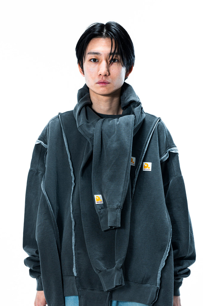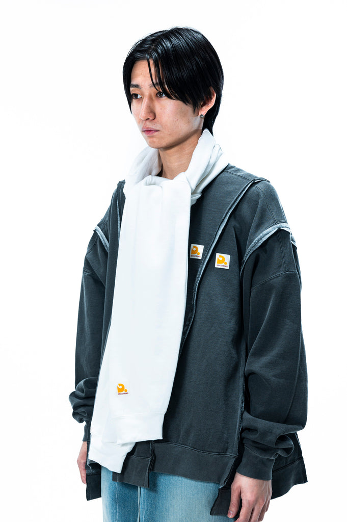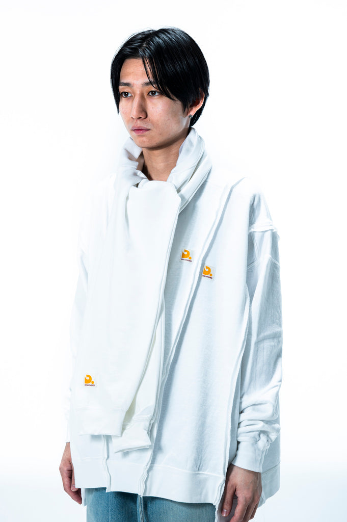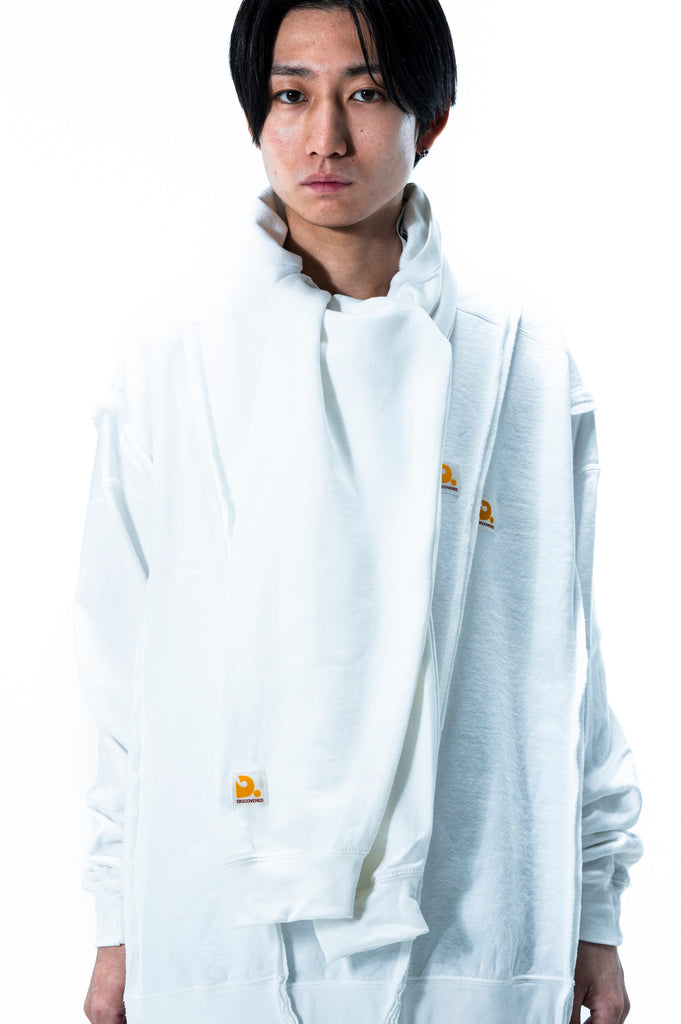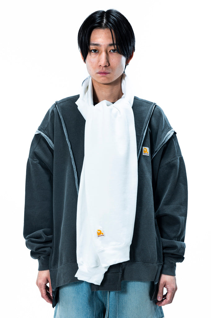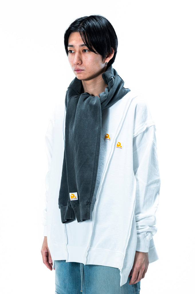 ドッキングスウェットを繋ぎ合わせてロングマフラーにしています。